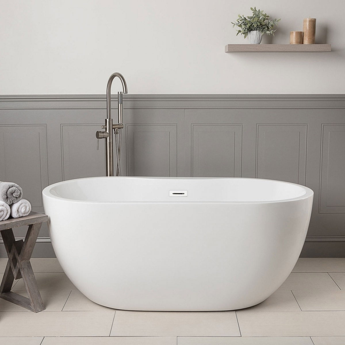 The Randolph Morris Hudson acrylic double ended freestanding tub is a simple low-profile acrylic tub. This freestanding tub includes a built-in pop-up drain, and the absence of faucet drillings allows you to choose a unique freestanding faucet that fits your bathroom's style.