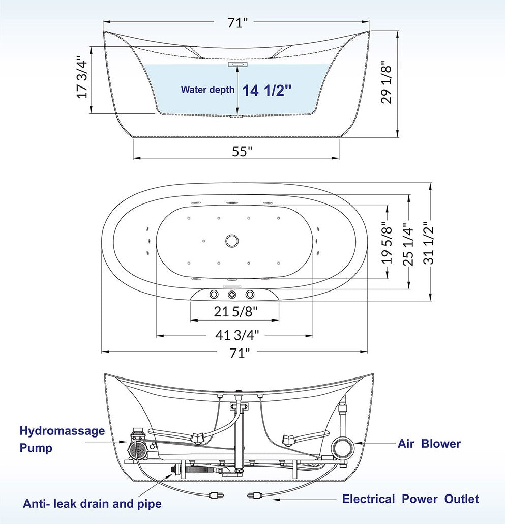 Deluxe acrylic Freestanding bathtub with Whirlpool and Air Bubble Jets